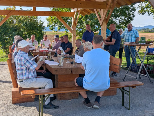 zum wiederholten mal war der "Dreispitz" oberhalb des Bahnhaltepunktes Treffpunkt der Sänger. Bei schönem Wetter verbrachten wir einige Stunden bei Gesang und was noch dazu gehört.
