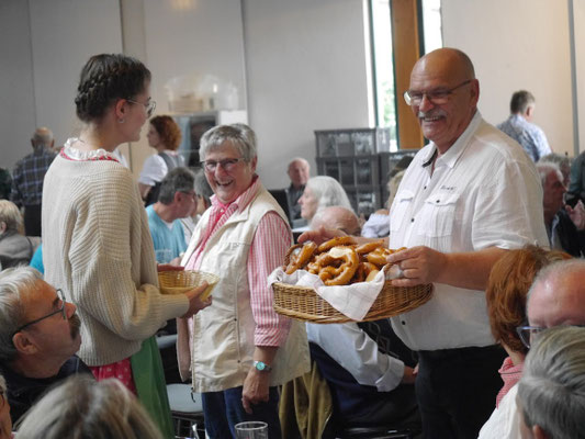 Bei unserer Ankunft wurden wir von einigen Sängerfreunden des MGV Burgbernheim herzlich begrüßt und mit einem riesigen, leckeren Kuchenbüfett verwöhnt.